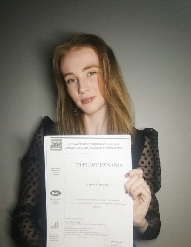 20 stycznia br. odbył się etap finałowy Konkursu z rachunkowości i finansów jednostek gospodarczych, w którym uczennica Zespołu Szkół Ekonomicznych zajęła pierwsze miejsce. Konkurs organizowany przez Stowarzyszenie Księgowych w Polsce – Odział Okręgowy w Krakowie ma na celu popularyzowanie wiedzy z zakresu rachunkowości i jest przeznaczony dla uczniów szkół średnich o profilu ekonomicznym. Laureatka, aby zwyciężyć, musiała pokonać 270 uczniów i wykazać się bardzo dobrą znajomością zagadnień, nie tylko od strony teoretycznej, ale także praktycznej.