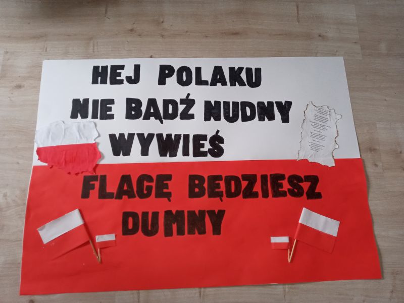 Prace powstały z inicjatywy profesor Urszuli Gacek-Łysiak, nauczycielki historii. Warto wspomnieć o tej inicjatywie w tygodniu poprzedzającym Dzień Flagi oraz rocznicę uchwalenia konstytucji 3 maja. Cytat z plakatu: " Choć ciągle wirus skupia uwagę, Ty nie zapomnij i wywieś flagę. Choć polityczne nie milkną spory, Ty narodowe wywieś kolory. Za czyjeś życie, krew oraz blizny zawsze szacunek miej do ojczyzny."
