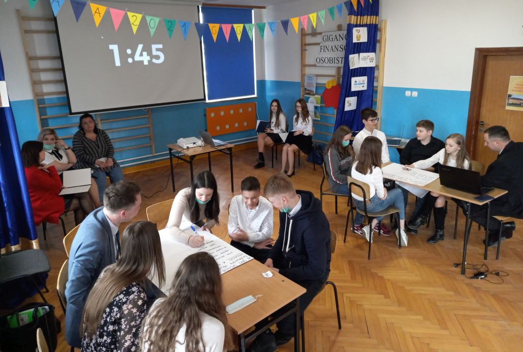 Na zakończenie uczniowie uczestniczyli w debacie podsumowującej realizację projektu ekonomicznego. Podczas debaty poruszano następujące kwestie: Czy warto oszczędzać pieniądze? Jakie są sposoby na oszczędzanie oraz jak zwiększyć wartość odkładanych środków? Czy inwestowanie może być formą oszczędzania? Co stanowi nasz dochód? W jaki sposób możemy racjonalnie gospodarować naszymi pieniędzmi? Na jakie cele przeznaczamy nasze oszczędności? Na te, i wiele innych pytań, odpowiadali uczniowie przy wsparciu merytorycznym zaproszonych Ekspertów.