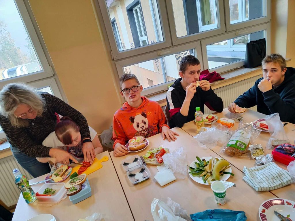Uczniowie Szkoły Przysposabiającej do Pracy z Zespołu Placówek Szkolno Wychowawczo – Opiekuńczych w Nowym Targu w ramach zajęć z przysposobienia do pracy wraz z nauczycielami wzięli udział w obchodach Europejskiego Dnia Zdrowego Śniadania.