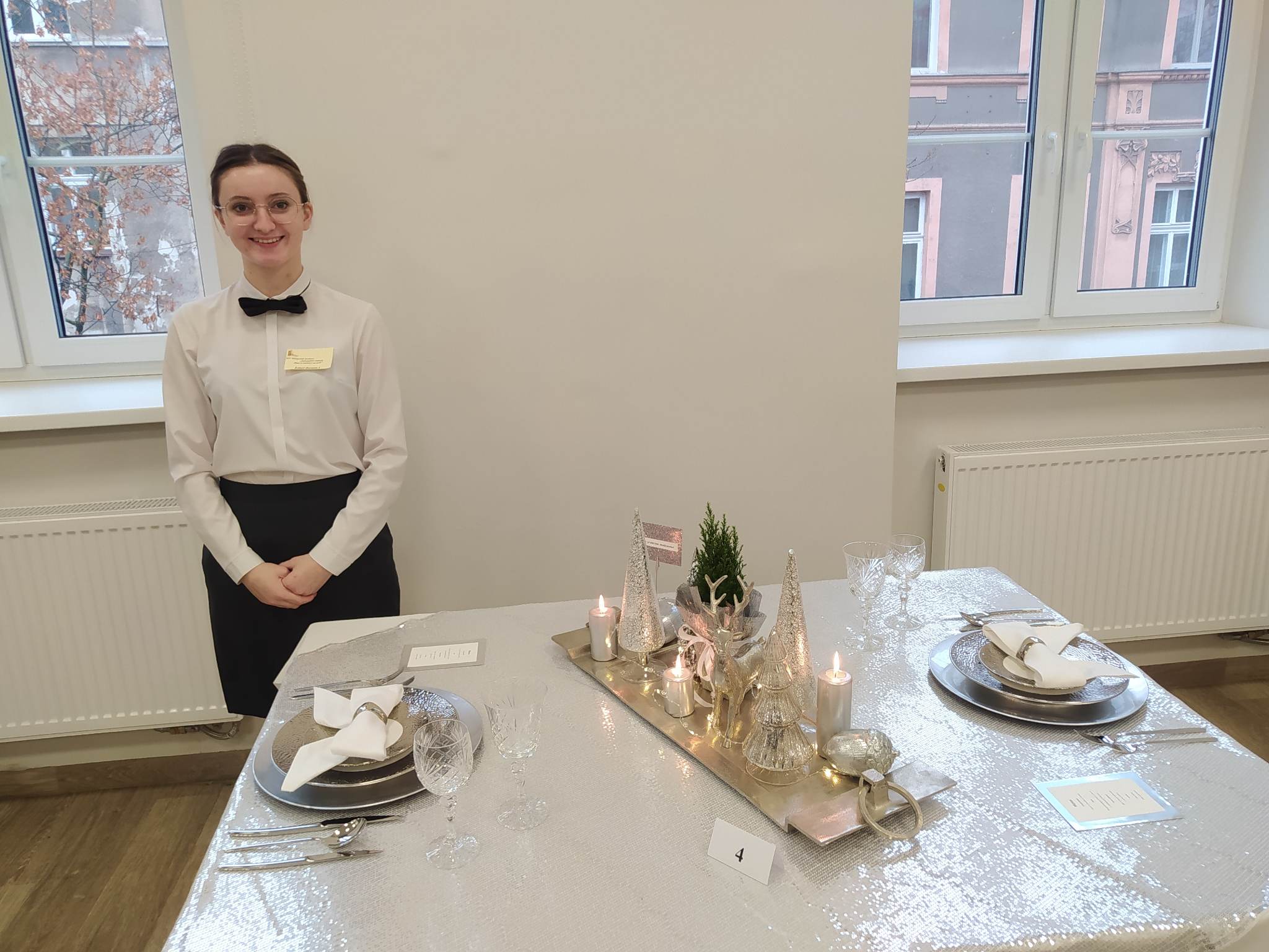Anna Antolak uczennica kl. IV technikum żywienia i usług gastronomicznych zajęła III miejsce w kategorii barman - kelner. Ania medalowo nakryła stół zgodnie z tematem i wykonała napój bezalkoholowy typu smoothie metodą blenderowania z wykorzystaniem obowiązkowego składnika – dyni.