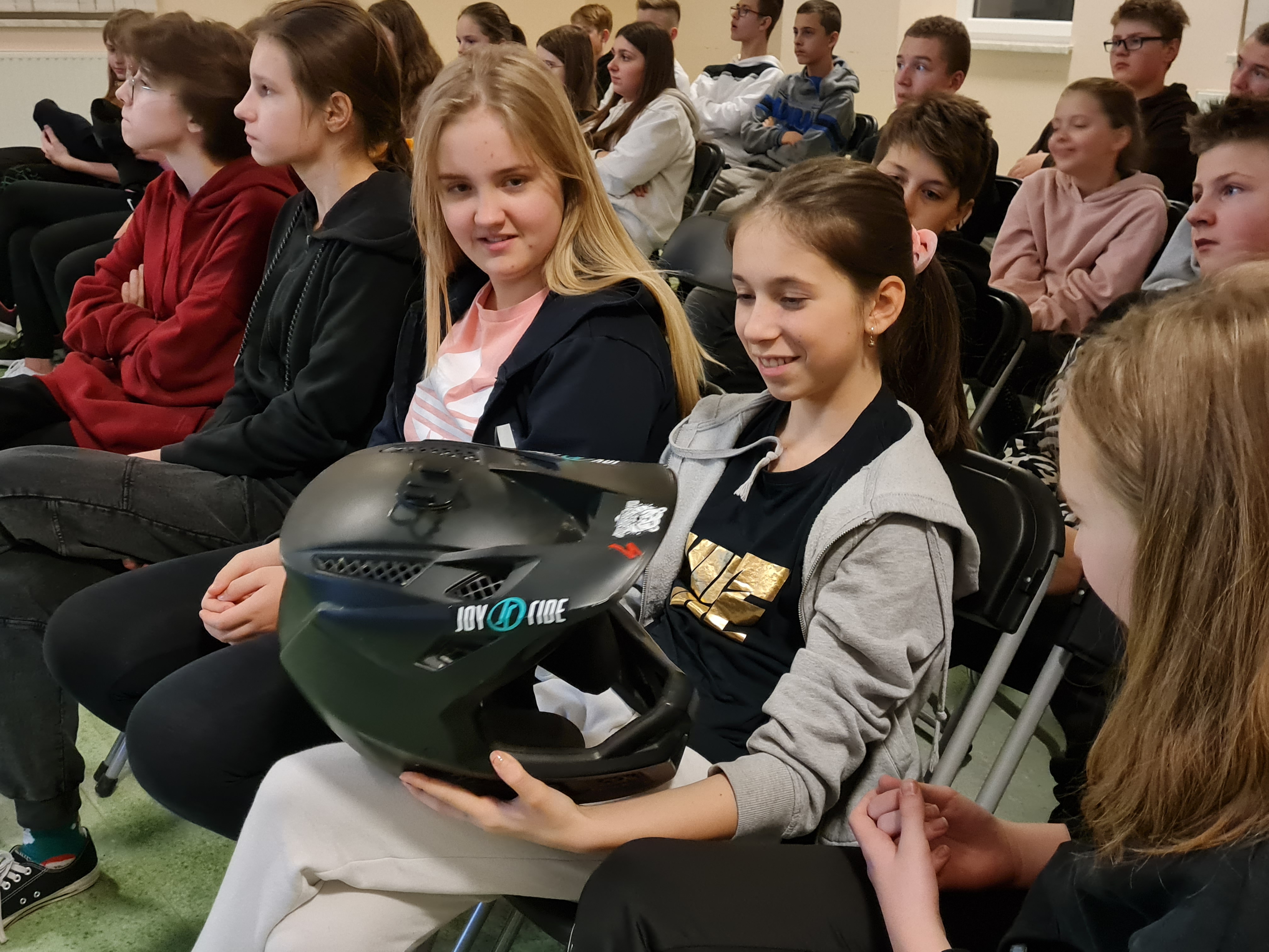 Miłością do rowerów próbował zarazić wszystkich Mateusz Stoch z Zakopanego - zawodnik i organizator zawodów oraz festiwali rowerowych. Dzięki prezentacji multimedialnej uczniowie mogli zobaczyć jazdę na rowerze na pustyni czyli w górach na wysokości ponad 5 tys. metrów. Rowerzysta dużo miejsca poświęcił na kwestie bezpieczeństwa, uczył też w praktyce zmieniać dętkę w rowerze i przeprowadził konkursy, w których najlepsi otrzymali cenne nagrody. Zaprezentował też swoje umiejętności w praktyce. Na specjalnie przygotowanym torze w sali gimnastycznej pokonywał przygotowane przeszkody, a potem każdy uczeń mógł spróbować swych sił na rowerze. Była oczywiście wspólną kolacja i nocleg w szkole, który młodzież spędziła wspólnie z nauczycielami: p. Bartłomiejem Sawerą i p. Agnieszką Rzadkosz.