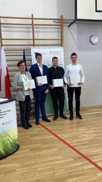 Dominik Szeliga i Mateusz Fudala z II klasy technikum agrobiznesu oraz Mikołaj Kurczak z klasy IV technikum technologii żywności bezapelacyjnie wygrali półfinał Ogólnopolskiego konkursu wiedzy o rolnictwie w Unii Europejskiej pn. „Polska Wieś w Europie”.