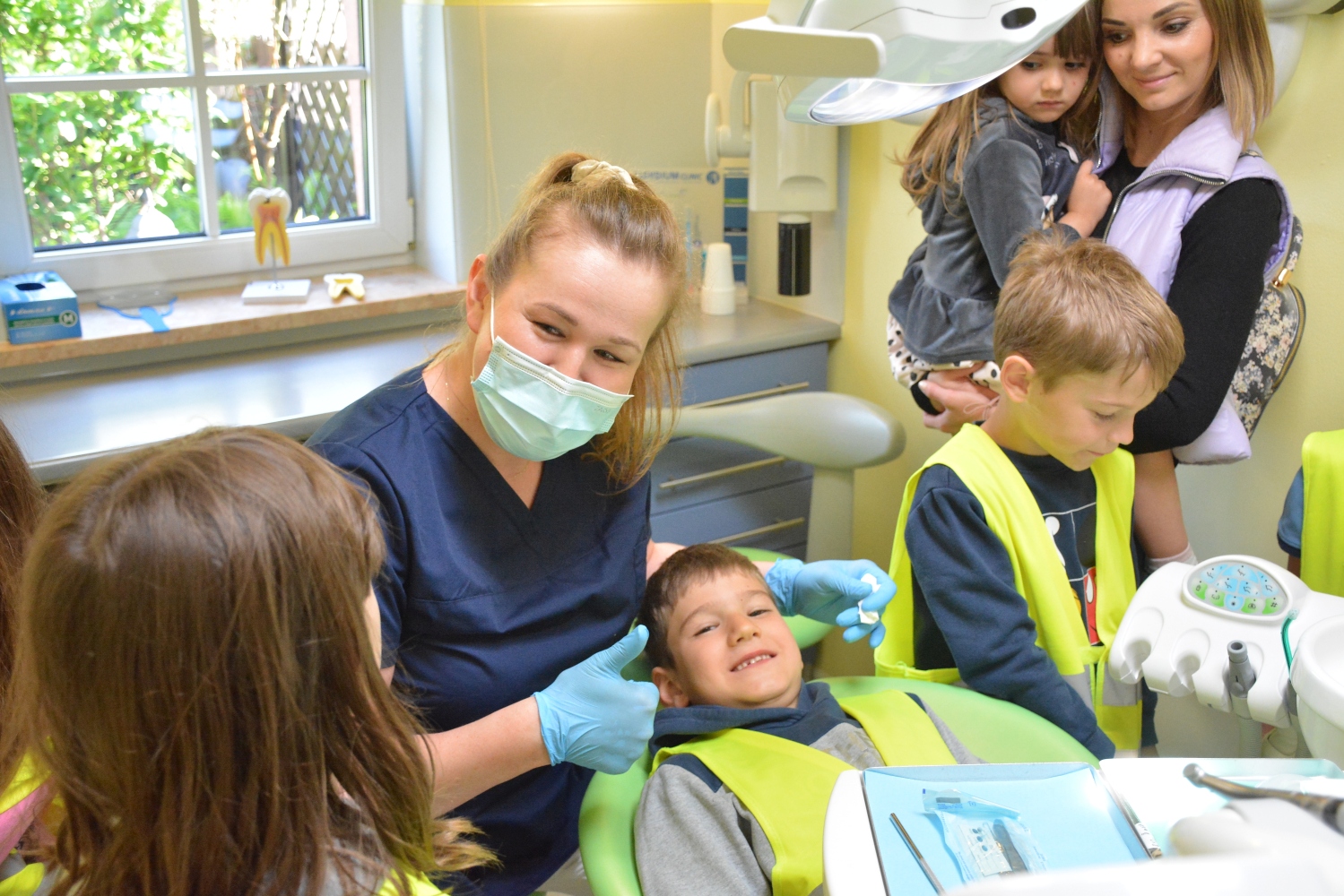 Higienistka Marysia wraz z koleżankami przeprowadziły badanie jamy ustnej. Młodzi pacjenci dotykali instrumentów stomatologicznych, jeździli na fotelach dentystycznych. Uczniowie dowiedzieli się, czym próchnica, co ją powoduje i wyjaśnione zostało pojęcie ogólnej profilaktyki. Przeprowadzony został krótki instruktaż mycia zębów na modelu szczęki.