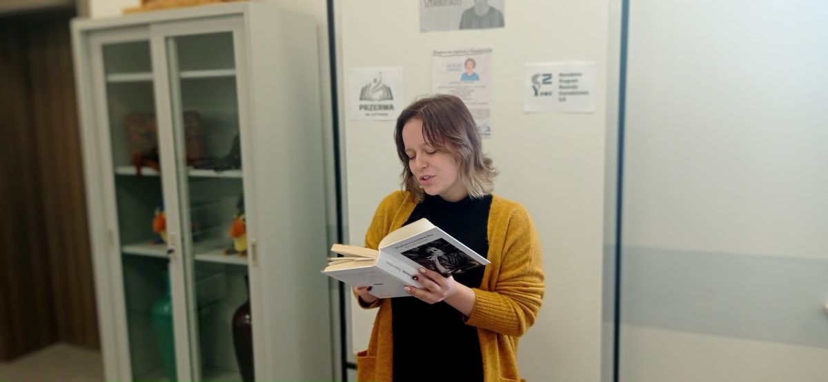 W czasie "Przerwy na czytanie z Szymborską" wspaniałe interpretowali głosowo wiersze nasi uczniowie i nauczyciele. Czytane utwory wspaniałe umilały przerwę w bibliotece miłośnikom nie tylko książek, ale i amatorom gry w szachy.