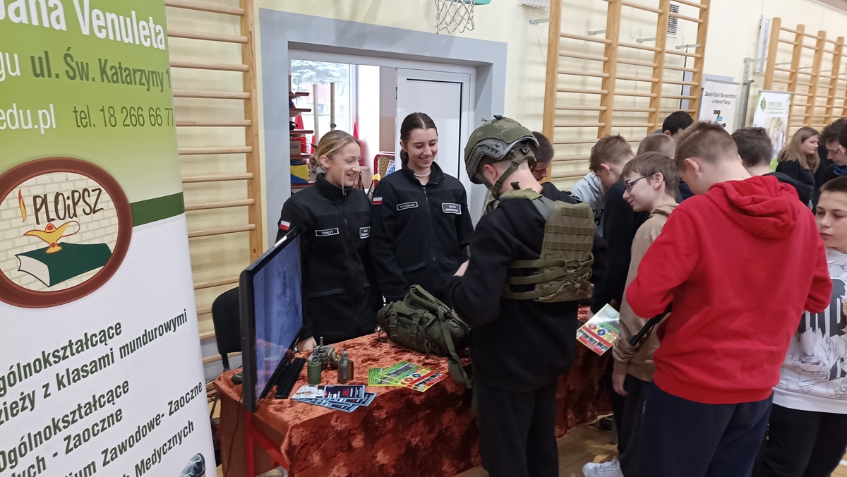 Na wszystkie pytania uczniów kończących szkoły podstawowe odpowiadali kadeci z klas I i II. Opowiadali im oni również o organizowanych wycieczkach - zarówno tych jednodniowych, jak i kilkudniowych. Zainteresowani ósmoklasiści zabierali ze stoiska ulotki z podstawowymi informacjami o Szkole oraz „namiarami" na jej profil facebookowy i stronę internetową.